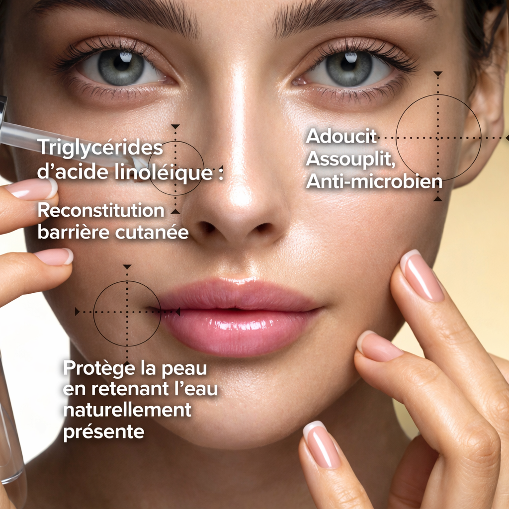L'huile de pépins de citrouille est riche en acides gras essentiels, notamment en acides linoléique (oméga-6) et oléique (oméga-9), qui sont essentiels pour maintenir une bonne hydratation de la peau. En renforçant la barrière naturelle de la peau, l'huile de pépins de citrouille aide à protéger l'épiderme contre les agressions extérieures comme la pollution, les toxines et le froid, pour une peau résistante.